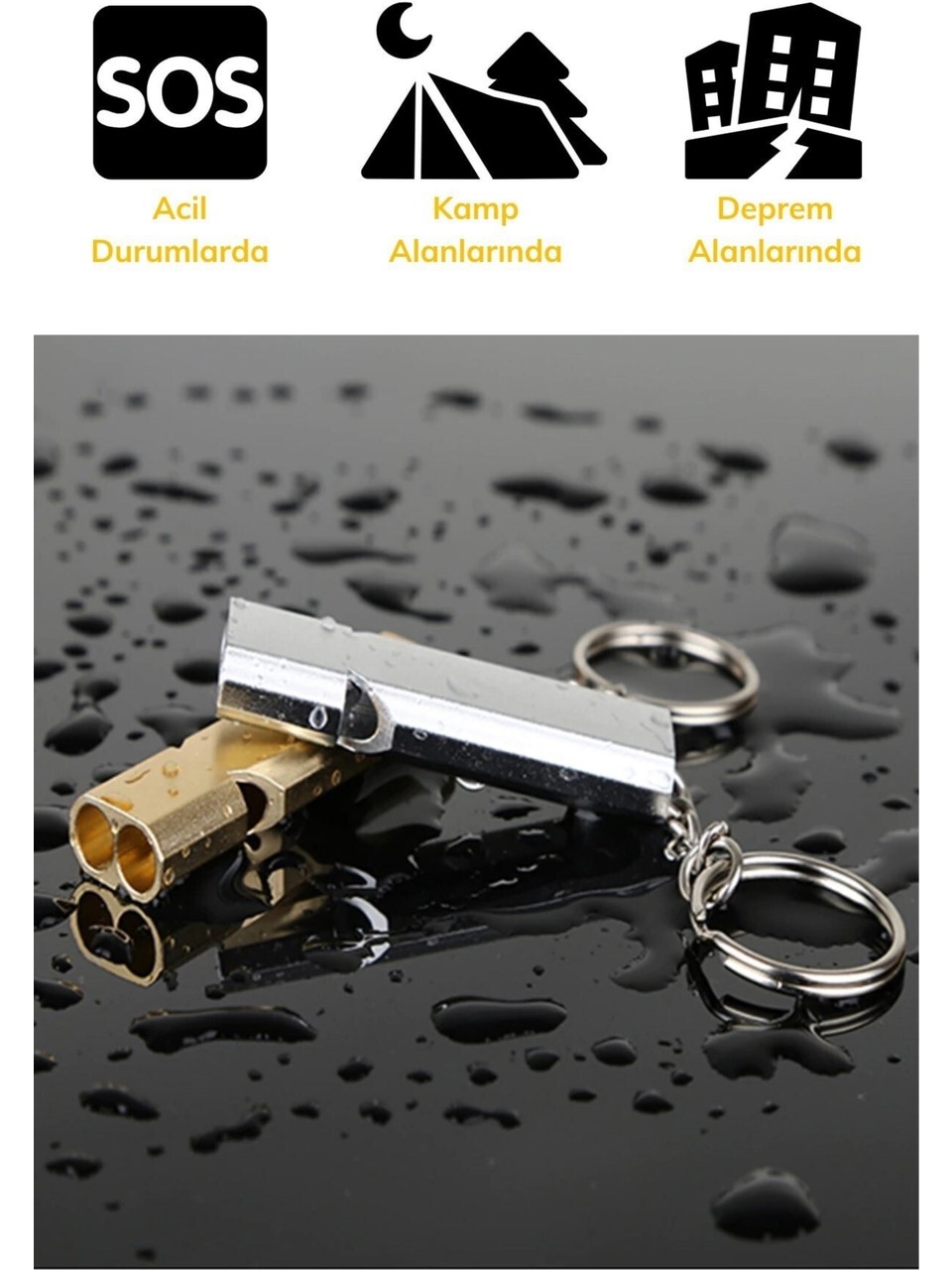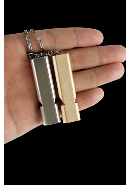 Yüksek Desibel Paslanmaz Çelik Alaşım Düdük Anahtarlık Özellikleri: siyah,gold,gümüş karışık renk Düdük, kolayca taşıyabilmenizi sağlayan bir anahtarlığa bağlanır.