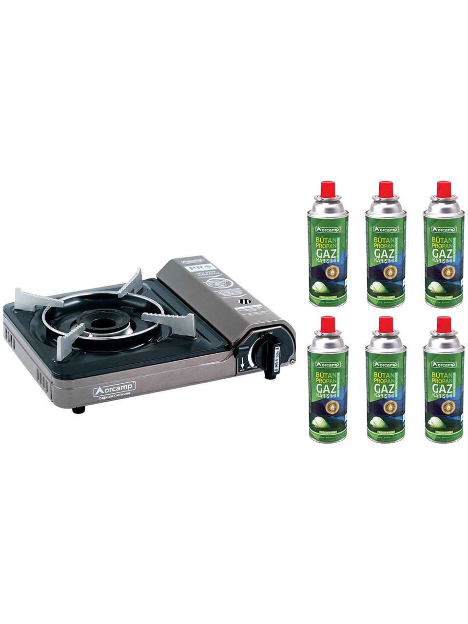 Orcamp Tekli Portatif Kamp Ocak Gaz Stop Emniyetli + 6 Adet 227 Kartuş